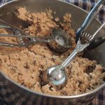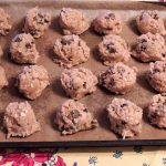 - Using a large cookie scoop, portion the dough into large balls and place on the prepared baking sheet, spacing evenly apart.
