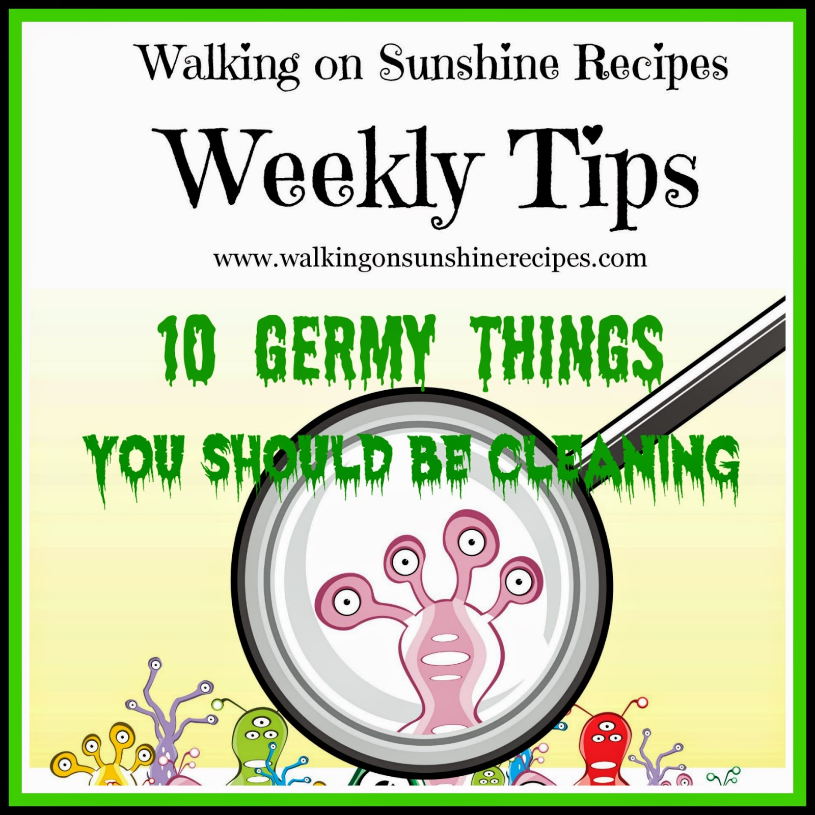 I'm pretty good at trying to keep things clean in our house but there are items that I sometimes forget to clean. Here's a great list of items that are germy and need cleaning from time to time.