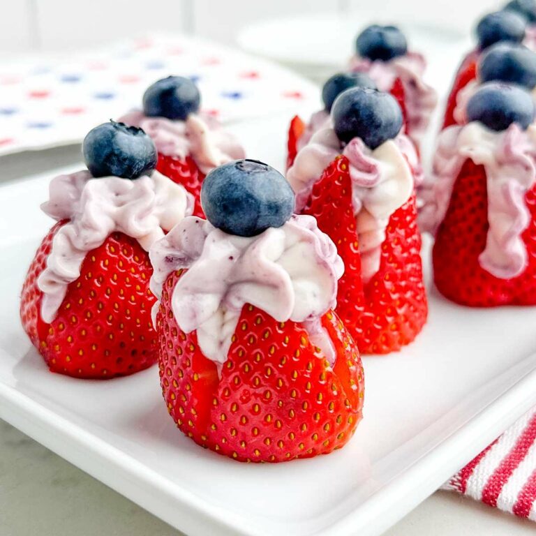 While everyone eagerly awaits the sizzling burgers and hot dogs, serve these red, white, and blue starters. They scream patriotism and summer fun!