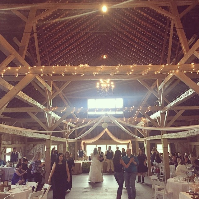Here's a photo of the inside of the barn. You can see our son dancing with the bride.