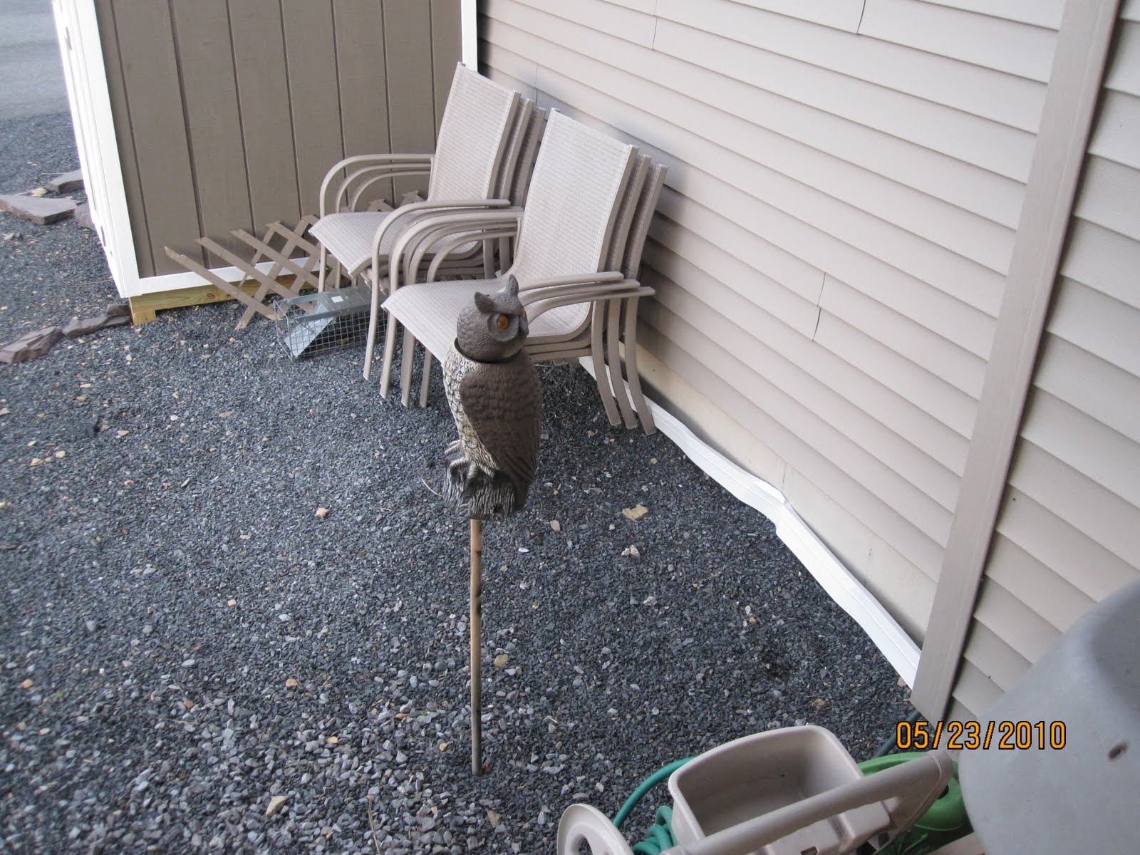 Lois, stick the owl IN the grill? Might backfire, your nest-builder might think she has found the Strong Silent Type of her dreams at last.
