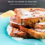 Slices of cinnamon bread dipped in beaten eggs then fried and topped with a sweet homemade sugary glaze, the same as my Easy Cinnamon Roll Bread Recipe.