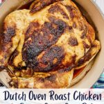 This recipe for Dutch Oven Roast Chicken is very similar to my Cast Iron Chicken Breasts recipe that is crazy popular on the blog. That recipe uses only chicken breasts, however, for this recipe we're cooking the whole entire chicken!