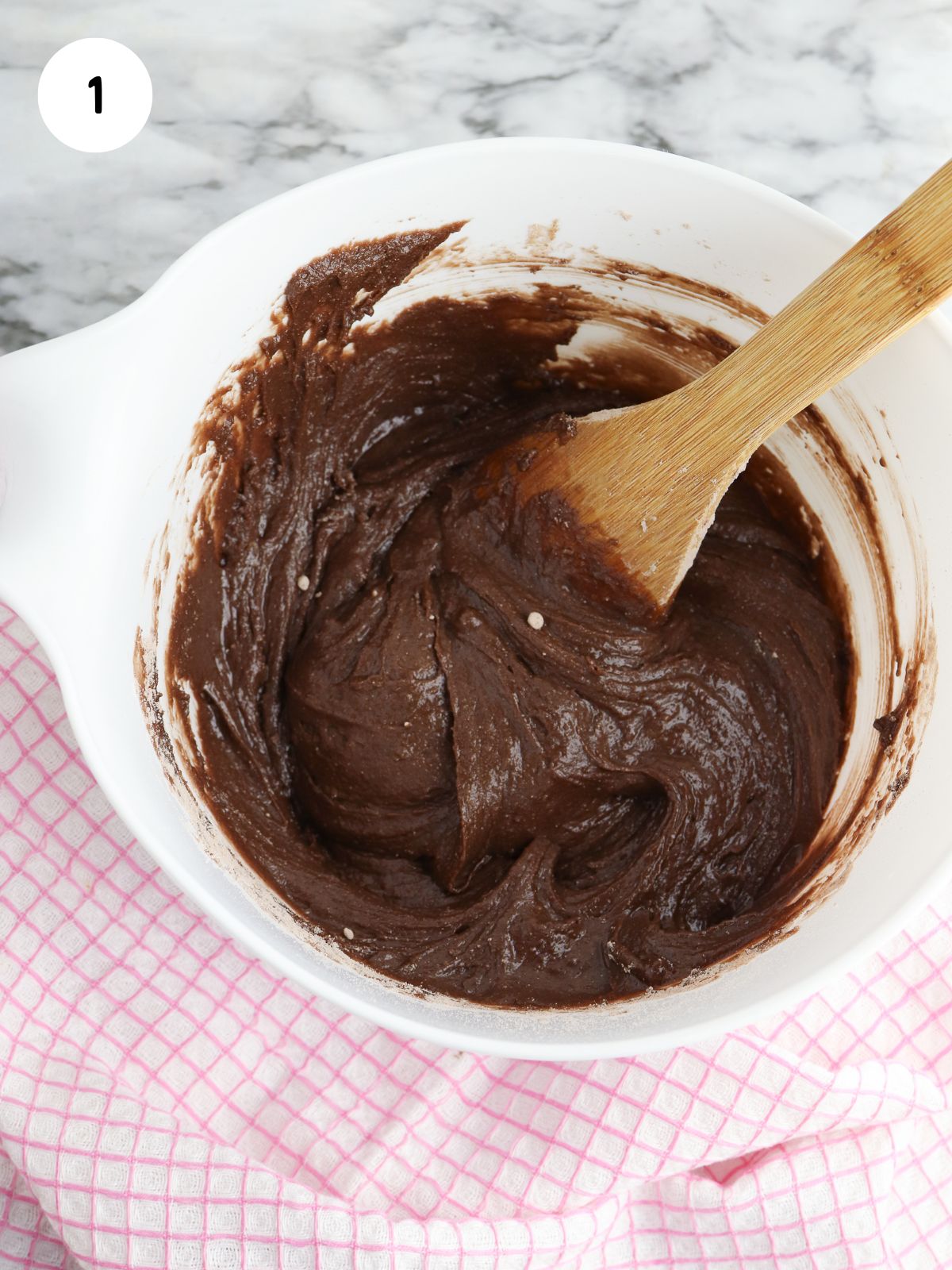 Step 1: Preheat your oven and line your baking pan with parchment paper. Prepare the brownies according to the box instructions.