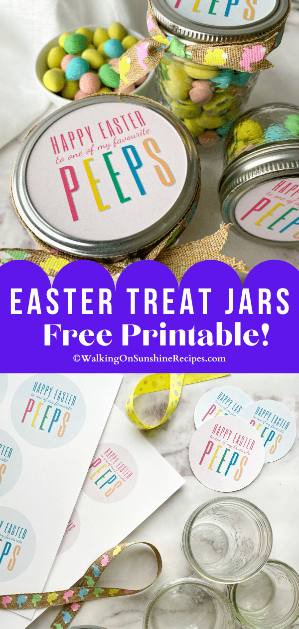All you need for these mason jar treats are your favorite Easter candy, ribbon, mason jars and the FREE printable labels. Make sure you print that out!