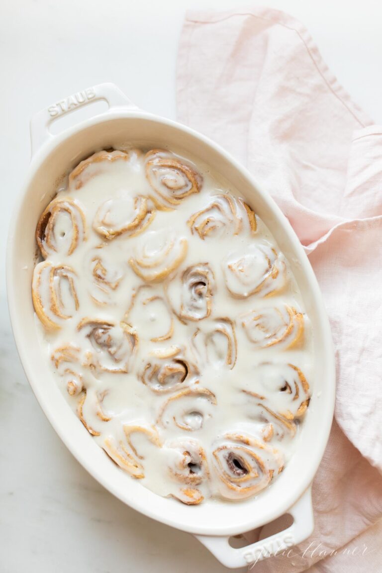 When hosting a holiday celebration, I love to prepare any cinnamon roll breakfast ideas to serve along with the savory food. Everyone loves a little something sweet with their cup of coffee.