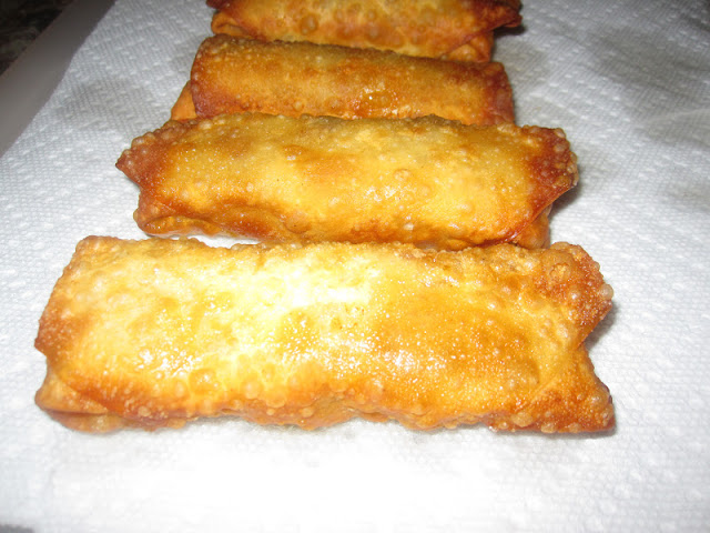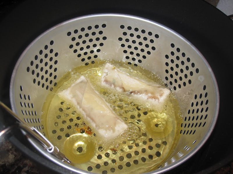 Get your oil nice and hot and carefully place the Egg Rolls in the deep fryer,