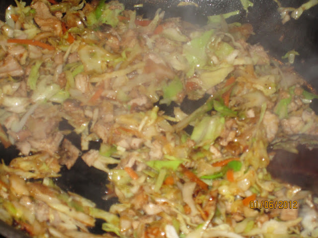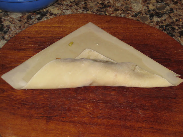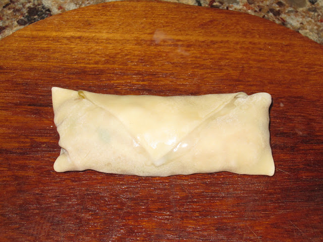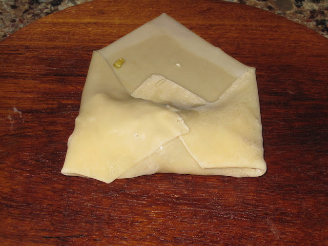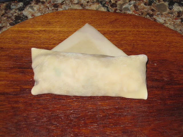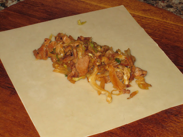 Place some of your pork/coleslaw mixture in the middle of the wrapper.