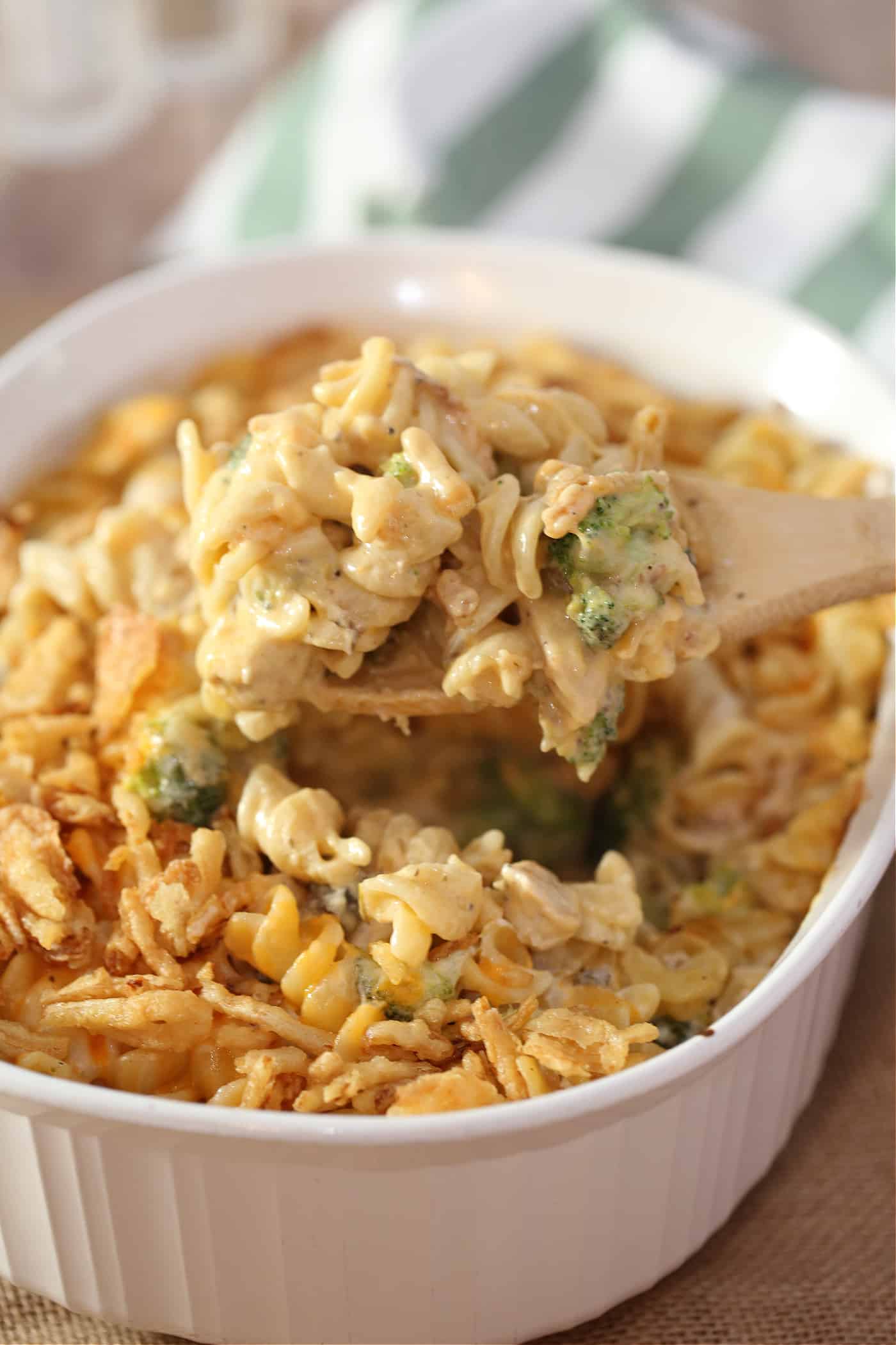 A casserole is a type of comfort food dish featuring vegetables, proteins, and grains combined with sauces or creamy ingredients like cheese and milk that usually help bind everything together.
