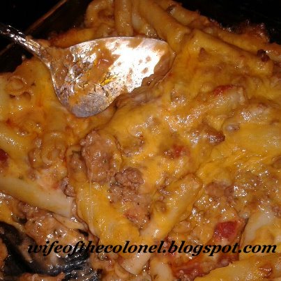 I grew up eating this homemade dish. I bet we had it twice a week! And I love it. The only problem is that it doesn't have edges and it's pasta. Those should both send up red flags to me. lol