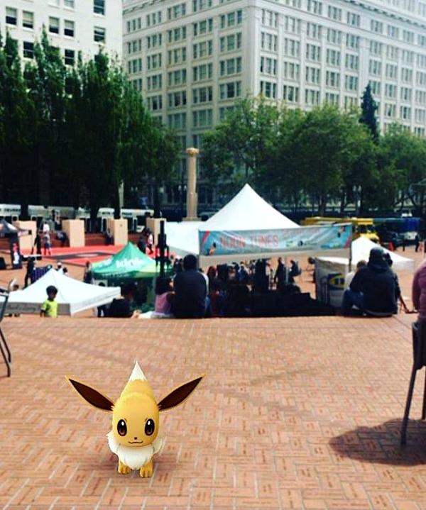 Yesterday there was a big Pokemon battle/meetup in downtown Portland, Oregon,
