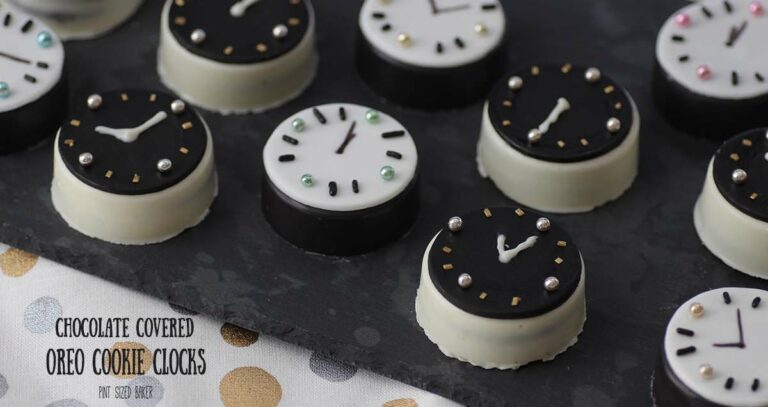 This collection includes festive cookies for parties and cookie trays, from chocolate-covered Oreo clocks and bubbly champagne cookies to classic shortbread dressed up with New Year sprinkles.