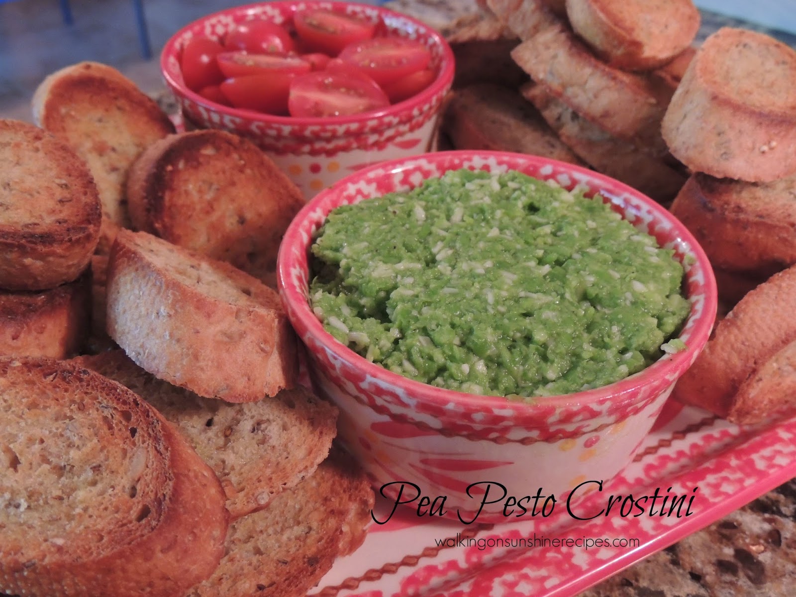 We finally were able to celebrate my son's high school graduation with a graduation party this weekend. We've had a very busy summer and my husband was away training the cadets for the past 6 weeks. The only time we had to have Michael's graduation was this past weekend...three days before he leaves for college. We had a great time and I have to share with you this recipe for Pea Pesto Crostini that my friend, Jani, made for the party.