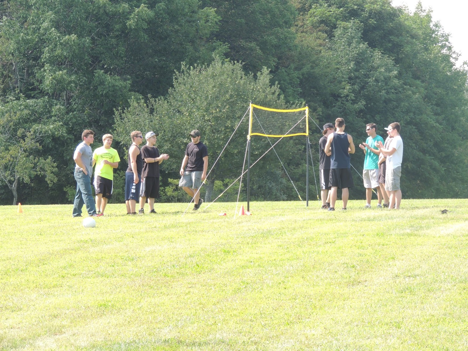 The back porch before everyone arrived. For a few years now my hubby has extended our back porch table with plywood to make our table BIG enough to fit a lot of people. We cover it with inexpensive flannel back tablecloths that are stapled to the plywood. The tablecloths are easy to clean and are easy to change if they get damaged. With an "assortment" of chairs, we are able to fit 20 people around this extended table. We also had our dining room set up for guests to sit and eat as well.