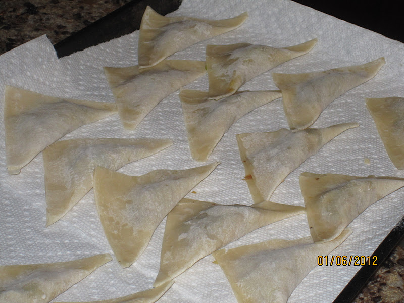 If you are going to serve them as appetizers, it's easier to prepare the won tons early in the day, lining them on a baking tray. Then cover the won tons with a damp paper towel and place in the refrigerator until your guests arrive.