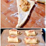 Step 4: Beginning at the bigger end, roll up the crescent rolls and place on a baking tray that has been lined with parchment paper.
