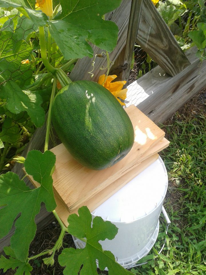 We planted 2 pumpkin plants and 5 pumpkins grew!