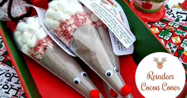 Easy to make and fun to give Santa and reindeer hot cocoa cones!