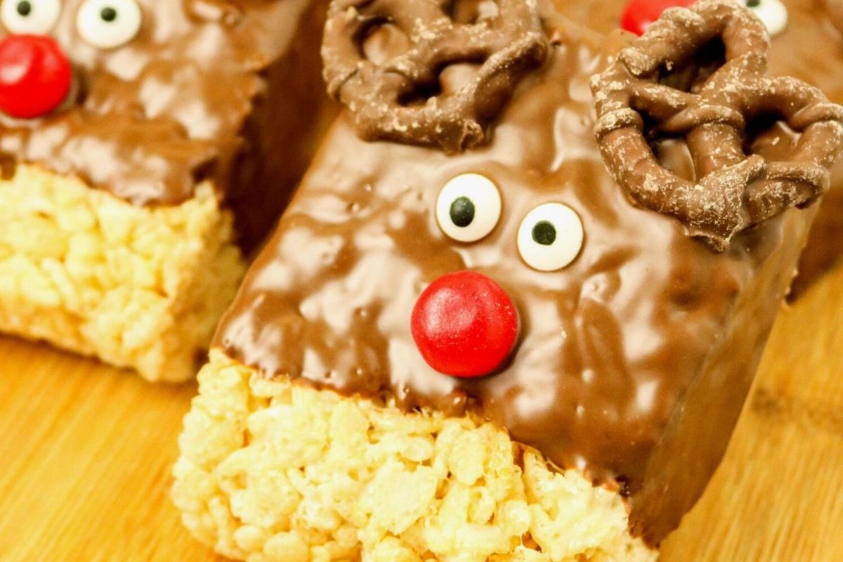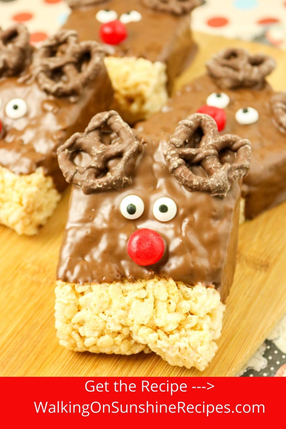 Reindeer Treats Recipe is not only cute, but easy to make. Rice Krispie bars dipped in chocolate and decorated to look just like Rudolph.