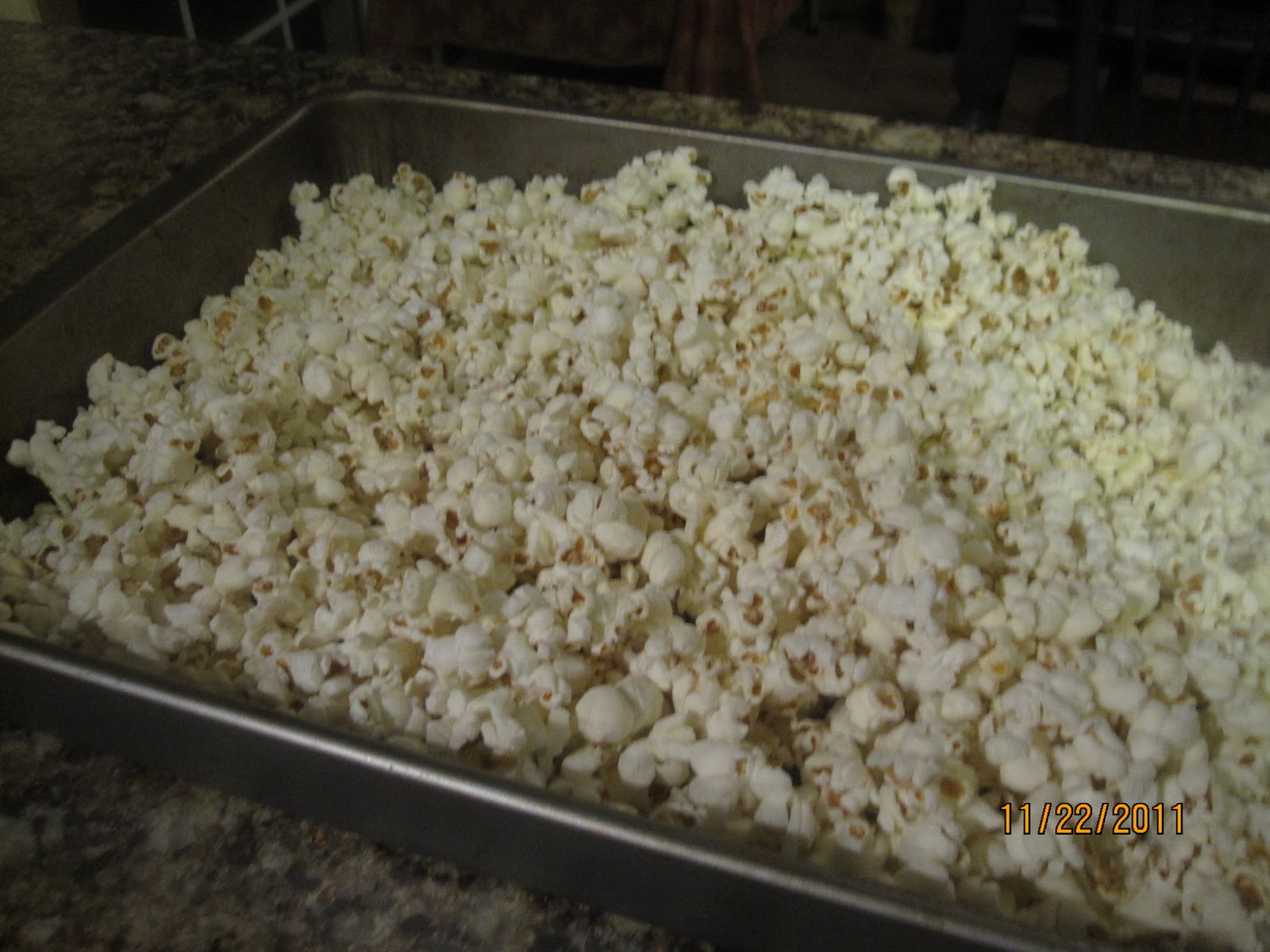 8 quarts of air popped popcorn (about 2 cups of kernels)