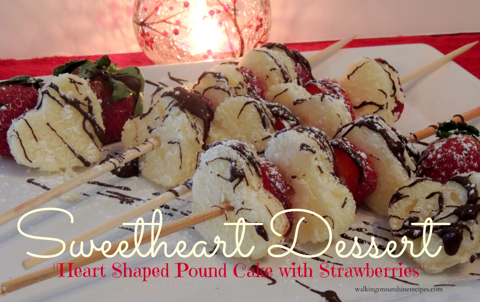 - Using a heart shaped cookie cutter, cut shapes out of the pound cake slices.