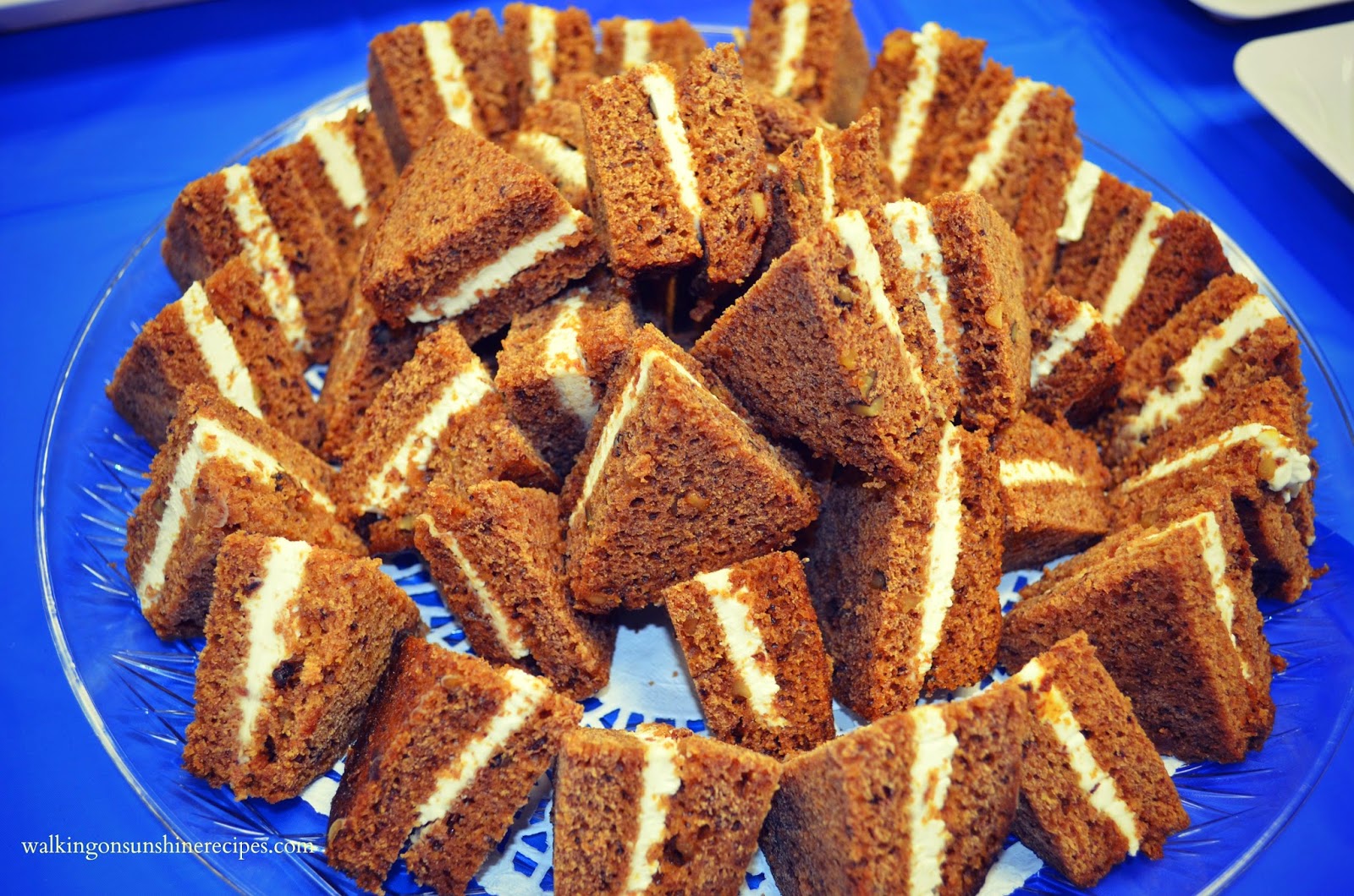 These sandwiches are so easy and delicious! Cream cheese spread on date/nut bread. My mother made these sandwiches. Date/nut bread is usually sold in the dairy aisle at our local grocery store. It comes in a round shape small loaf or pre-sliced.