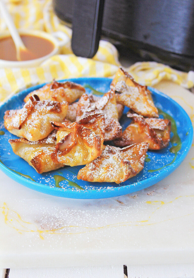 Using an air fryer is a great way to make a snack or dessert that is fast, easy and lower calorie. Included in this collection of air fryer recipes are almond cream cheese wontons, veggie wonton rolls, caramel apple rolls, jalapeno poppers and pizza egg rolls.